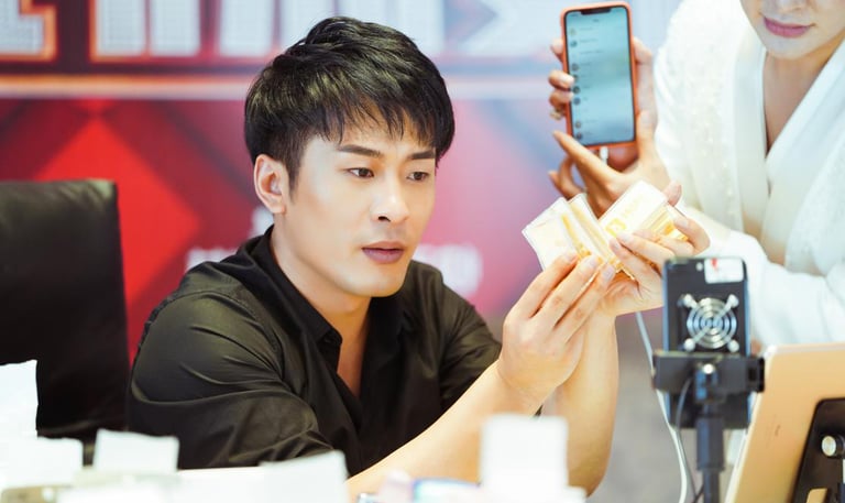 The famed Chinese influencer Youzhi Xin during a livestreaming session